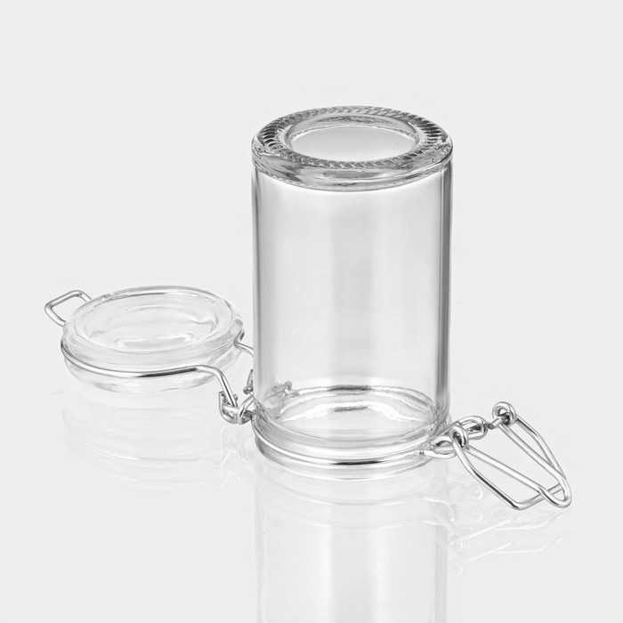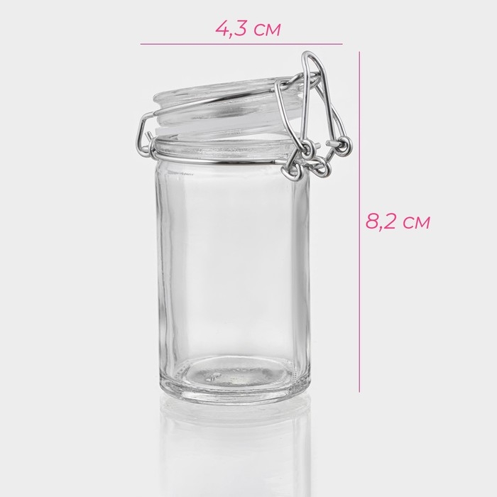 Банка стеклянная для хранения сыпучих продуктов Доляна «Оптима», 80 мл, 4,3×8,2 см, с бугельным замком