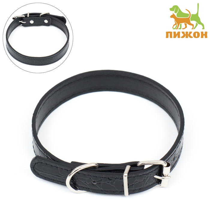 Ошейник "Бесконечность" 45 х 2 см, ОШ 31-40, искусственная кожа, чёрный
