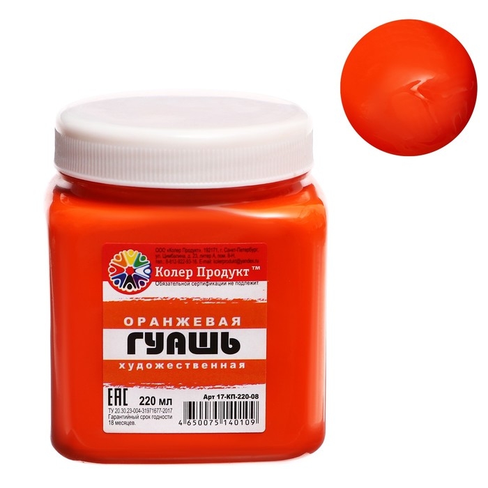Гуашь художественная "Колер Продукт", 220 мл, в банке, оранжевый