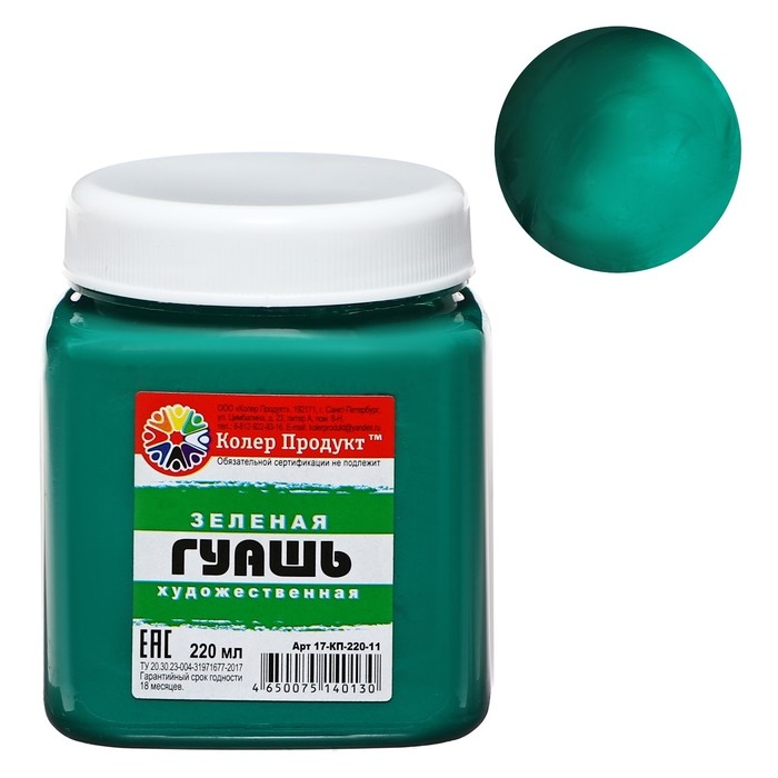 Гуашь художественная "Колер Продукт", 220 мл, в банке, зелёный