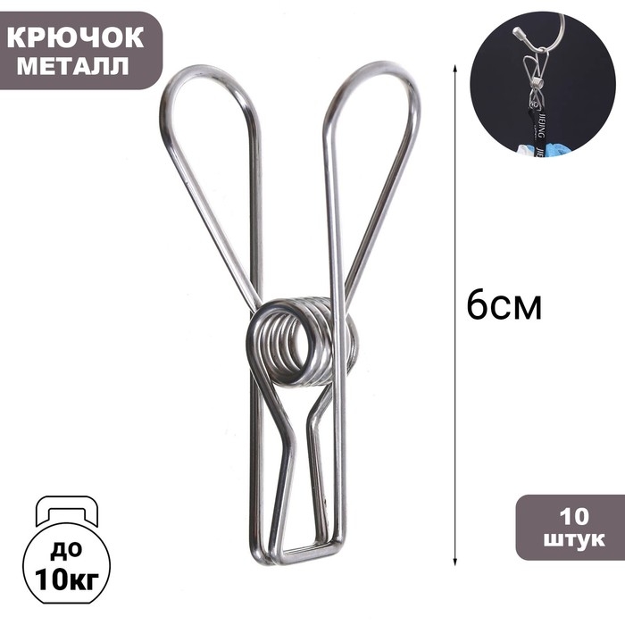 Прищепки из нержавеющей стали (набор 10 шт.), 6×1,5×2, цвет хром