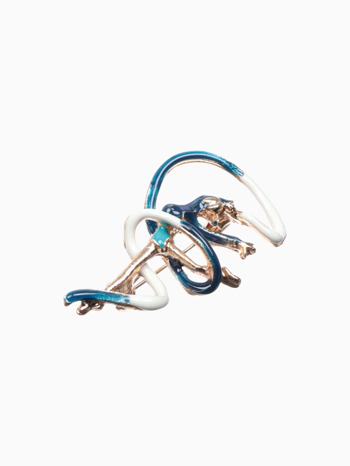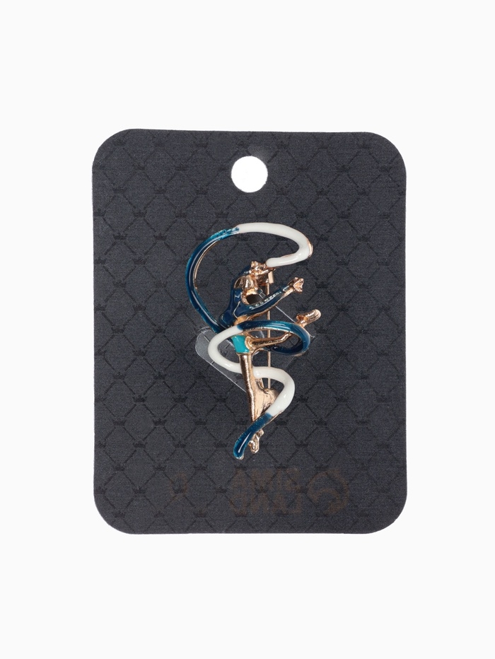 Брошь «Гимнастка» с лентой, цвет синий в золоте