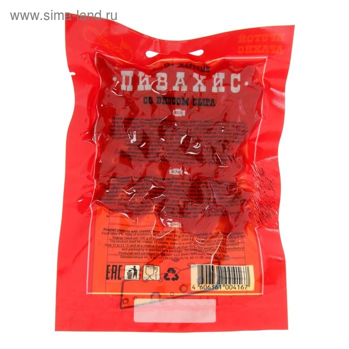 Арахис «Пивахис» - это жареный солёный арахис со вкусом сыра, который прекрасно подходит в качестве закуски к пиву. Любители необычных вкусовых сочетаний безусловно оценят «Пивахис» с сыром в ароматной, острой хрустящей корочке - этот снек точно не оставит равнодушными любителей солёного! Технология вакуумной упаковки позволяет в полной мере сохранить вкус и аромат этого уникального продукта.