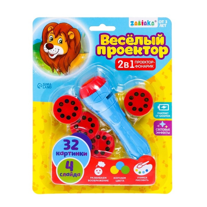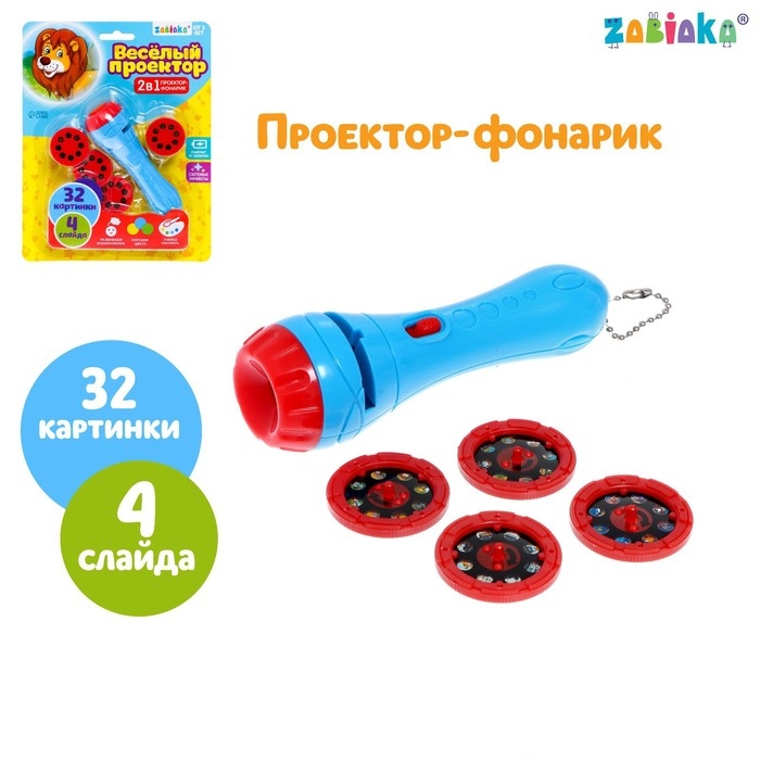 Проектор-фонарик «Весёлый проектор», 4 слайда , 32 картинки, МИКС