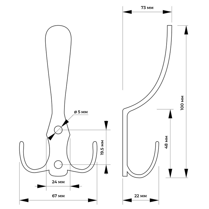 Крючок мебельный CAPPIO USUAL, двухрожковый, белый