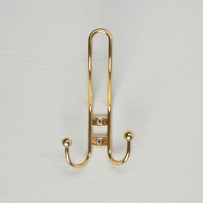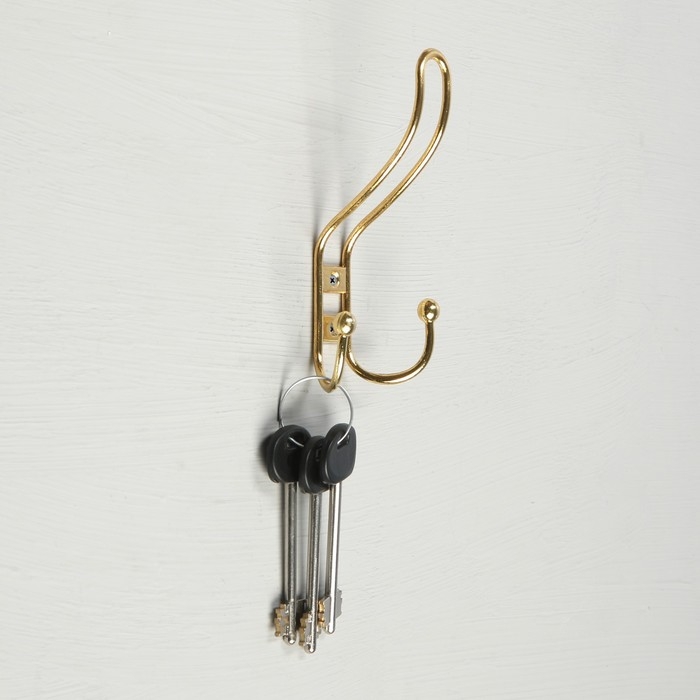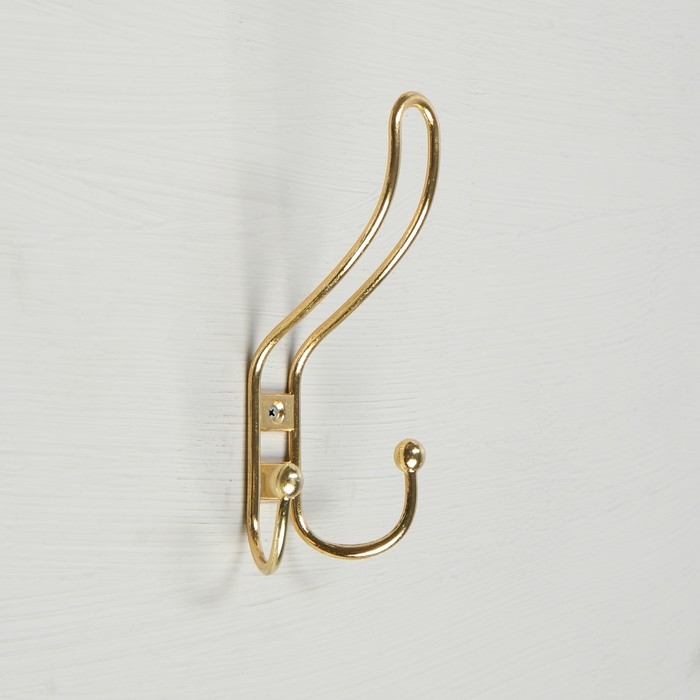Крючок мебельный ТУНДРА TKD023, двухрожковый, золото