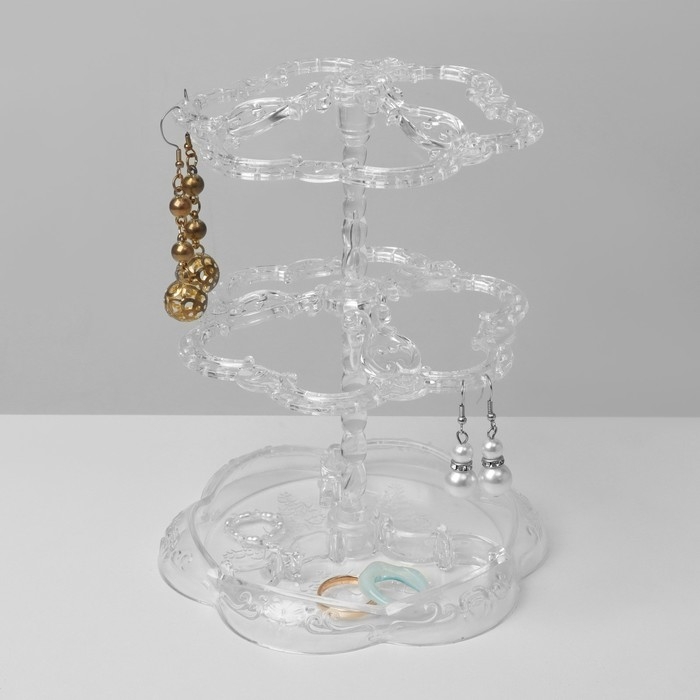 Подставка под серьги «Лепестки» 14,5×14,5×17 см, 2 яруса, цвет прозрачный