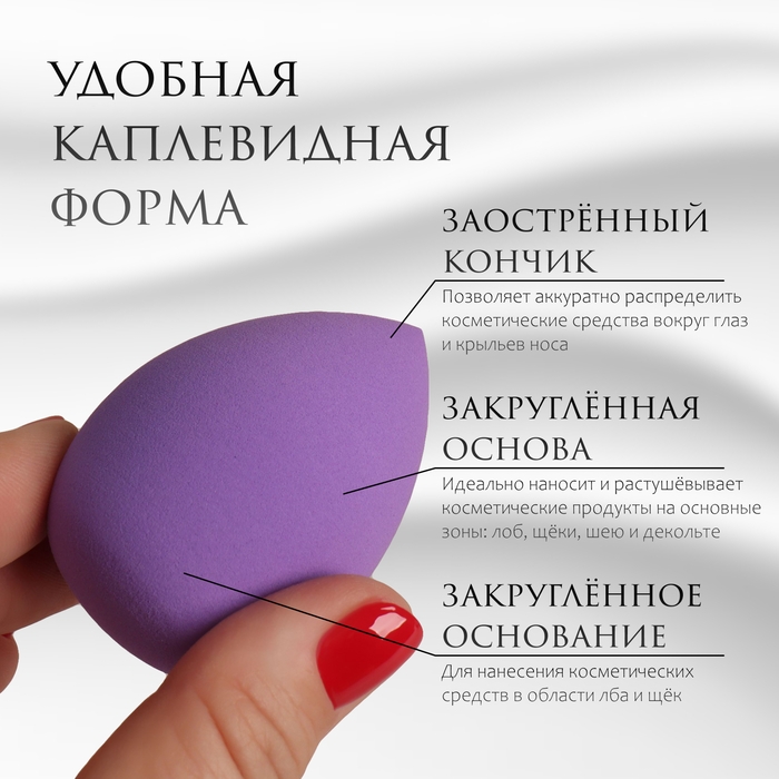 День каждой девушки начинается с привычного ритуала – создания макияжа. Облегчить утреннюю задачу и сэкономить время поможет специальный спонж для нанесения тонального крема. Изделие распределяет косметику ровным, тонким слоем, легко растушёвывает даже в самых труднодоступных местах. Спонж увеличивается при намокании, что позволяет обрабатывать большие участки и ускоряет процесс макияжа, а косметическое средство распределяется по коже более мягко и равномерно. Наслаждайтесь идеально ровным тоном в течение всего дня!