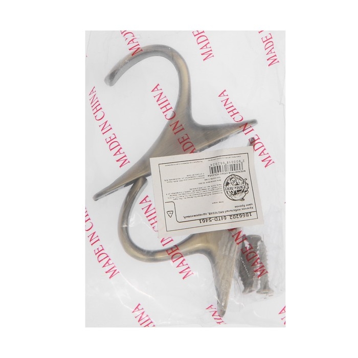 Крючок мебельный ТУНДРА TKO024, однорожковый, бронза, 2 шт