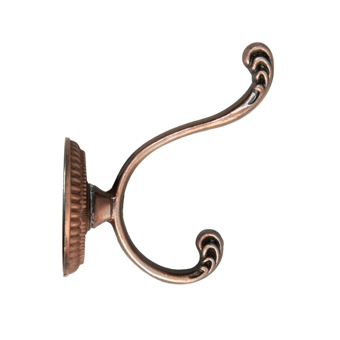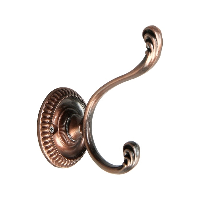 Крючок мебельный ТУНДРА TKD013, двухрожковый, медь