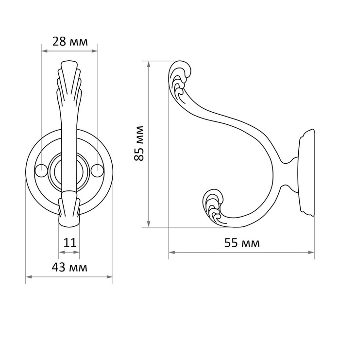 Металлический двухрожковый крючок поможет вам организовать порядок в доме. Данная фурнитура предназначена для хранения одежды, аксессуаров и других вещей.
