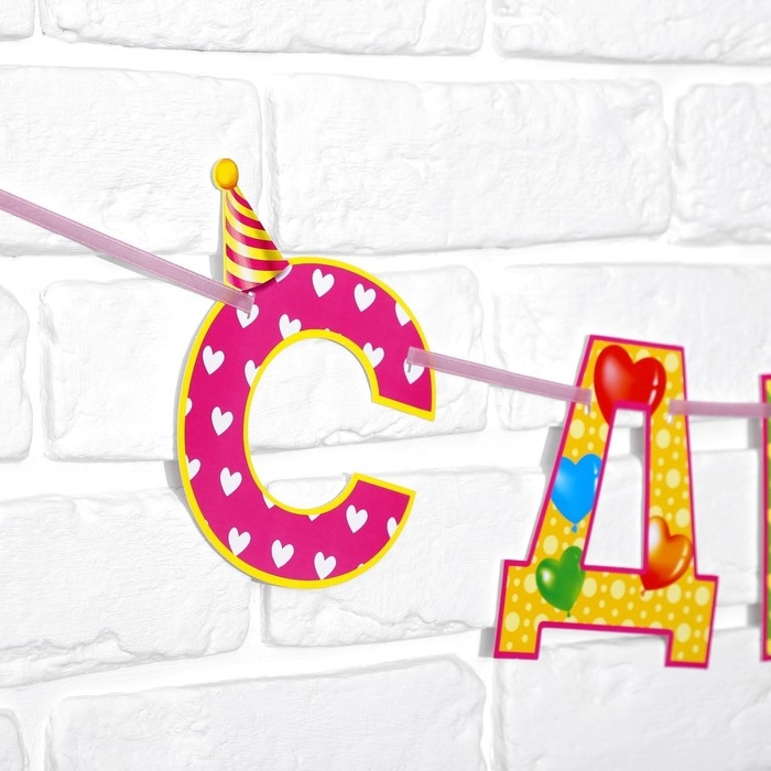 Гирлянда на ленте «С Днём Рождения!«, девочке, длина 250 см