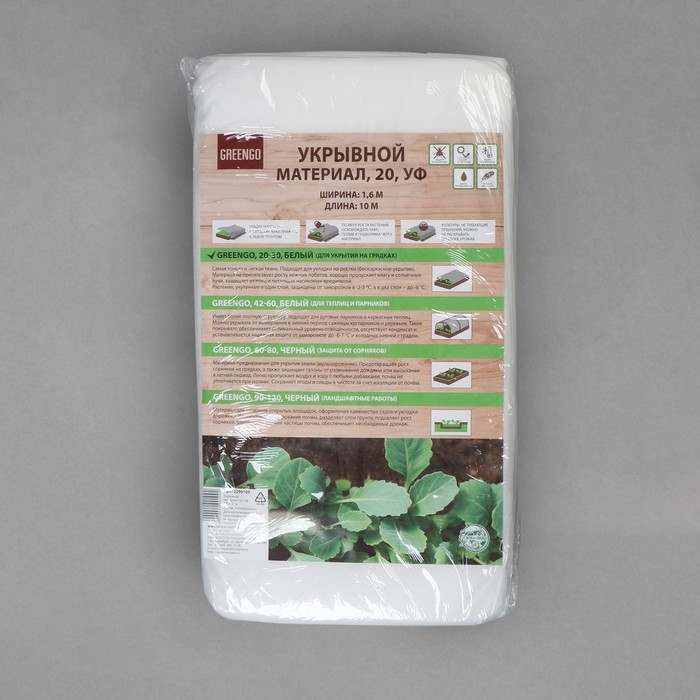 Материал укрывной, 10 × 1.6 м, плотность 20 г/м², спанбонд с УФ-стабилизатором, белый, Greengo, Эконом 30%