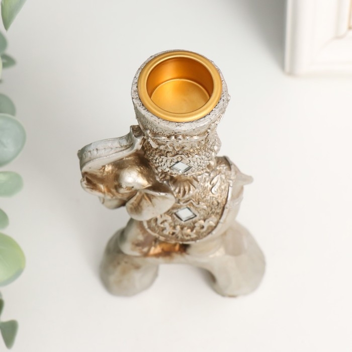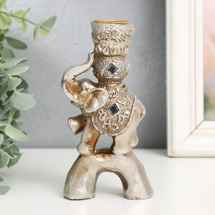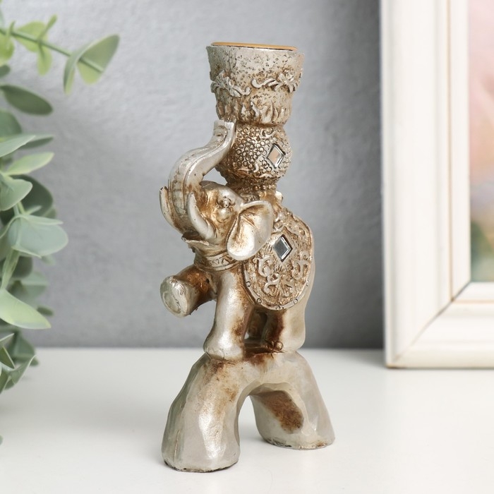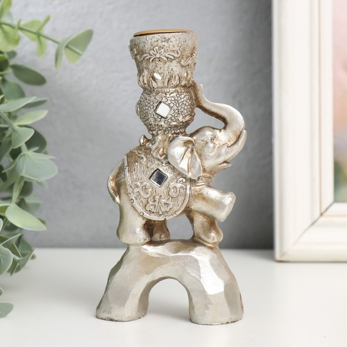 Сувенир полистоун подсвечник зеркальные вставки "Индийский слон на камне" 12,5х6,5х3 см
