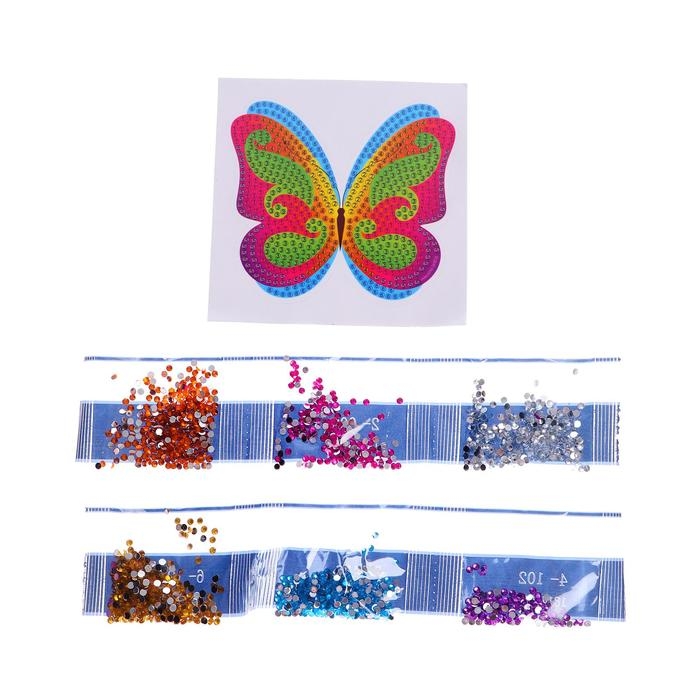 Алмазная мозаика-стикер на наклейке для детей «Бабочка», 10 х 10 см