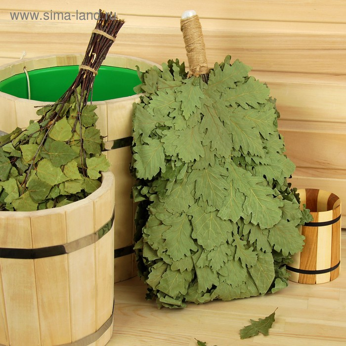 Веник для бани дубовый, 55 см "Элитный" с обмотанной ручкой, объёмный