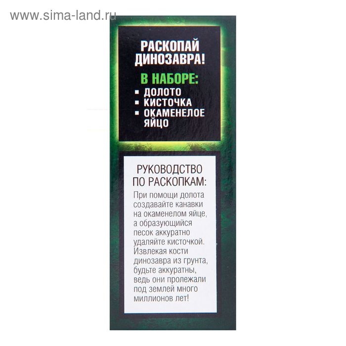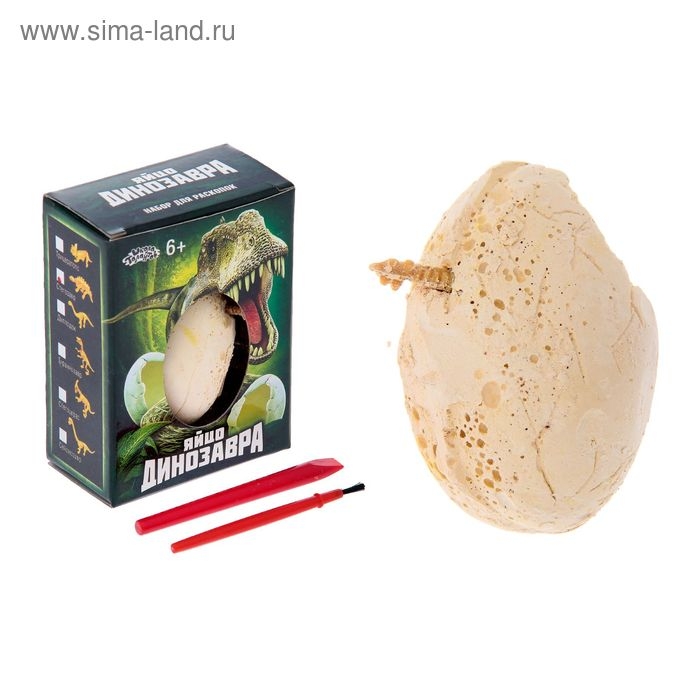 В наборе: долото, кисточка, окаменелое яйцо.