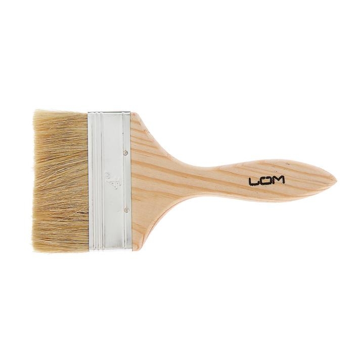 Кисть плоская ЛОМ, натуральная щетина, деревянная рукоятка, 4", 100 мм