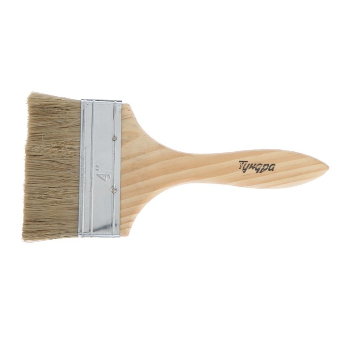 Кисть плоская ТУНДРА, смешанная щетина, деревянная рукоятка, 4", 100 мм
