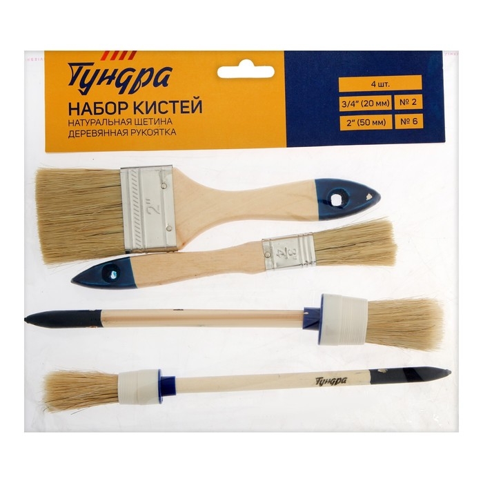 Набор кистей ТУНДРА, плоские, круглые №2, №6, 20, 50, 20, 30 мм 4 шт.