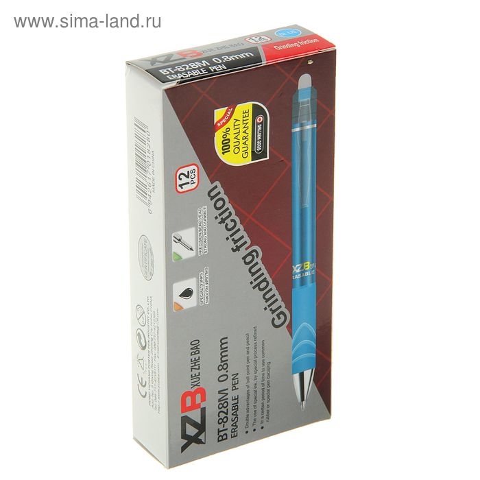 Ручка шариковая со стираемыми чернилами, линия 0,8 мм, автоматическая, стержень синий, корпус тонированный с резиновым держателем