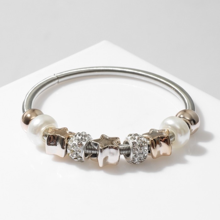 Браслет жемчуг «Марджери» звёзды, цвет белый в серебре, d=6,5 см