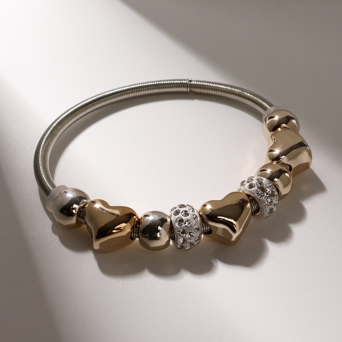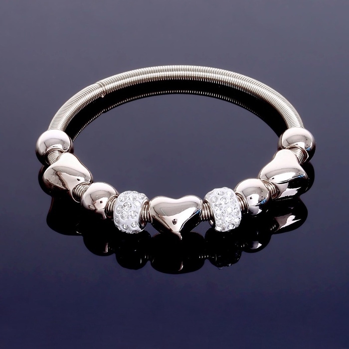 Браслет со стразами «Марджери» сердце, цвет белый в серебре, d=6,5 см