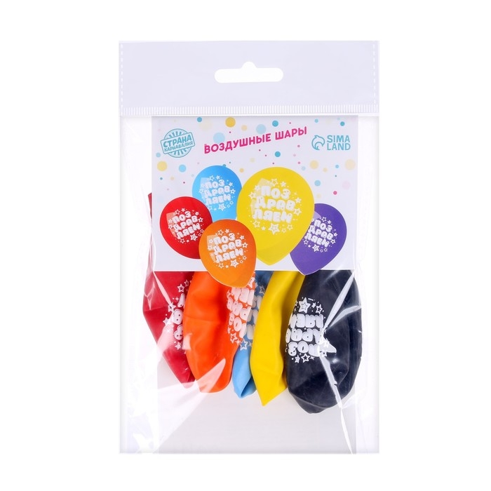 Воздушный шар латексный 12" "Поздравляем", звёзды, 5 шт.