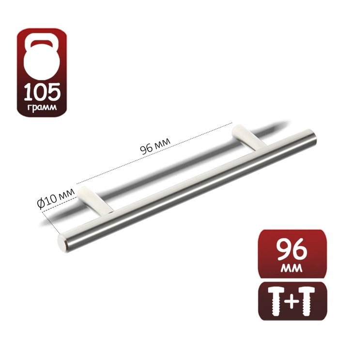 Ручка-рейлинг, d=10 мм, м/о 96 мм, цвет сатиновый никель