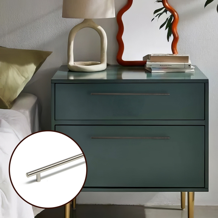 Металлическая ручка-рейлинг устанавливается на фасады ящиков тумб или комодов.