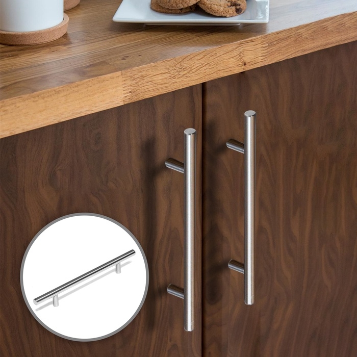 Металлическая ручка-рейлинг устанавливается на фасады ящиков тумб или комодов.
