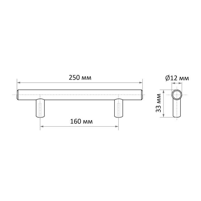 Ручка-рейлинг ТУНДРА HARLOW, пластик, d=12 мм, м/о 96 мм, цвет матовый хром