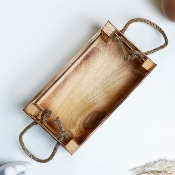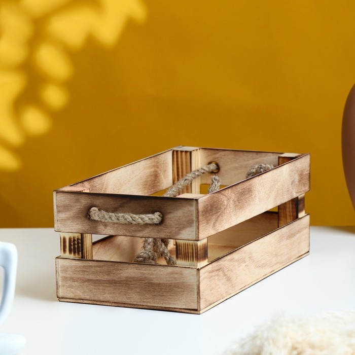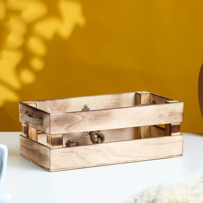 Кашпо деревянное 24.5×13.5×9 см "Двушка Лайт" реечное, ручка верёвка, обжиг Дарим Красиво