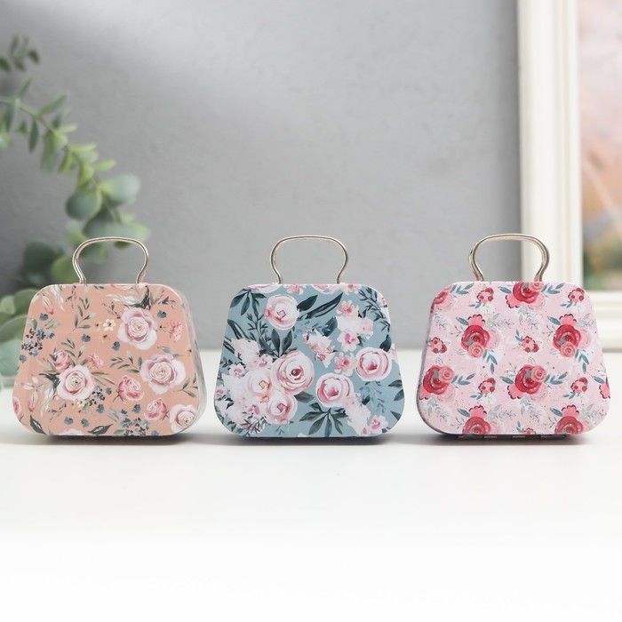 Шкатулка металл сумочка "Цветочная" МИКС 5,5х7х3 см