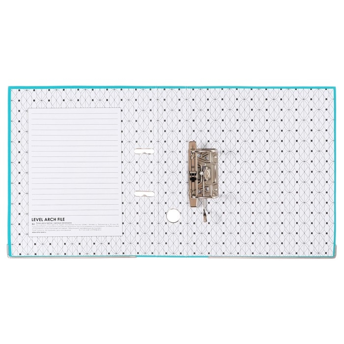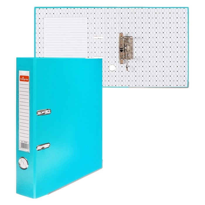 Папка-регистратор Calligrata с арочным механизмом изготовлена из плотного картона, с внешней стороны за ламинированного полипропиленовой пленкой (РР) с текстурой "лен", внутри оклеена бумагой с алфавитно-цифровым полем для классификации на левой стороне.