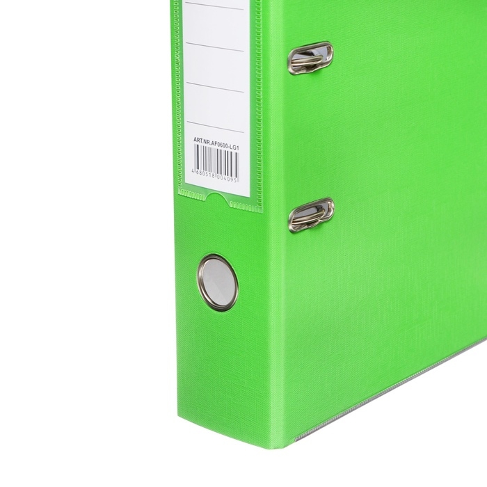 Папка формата А4 с вертикальной ориентацией изготовлена из плотного картона толщиной 1,75 мм, с внешним покрытием из переплетного материала с ПВХ-покрытием, который не имеет резкого запаха и отличается долговечностью и морозоустойчивостью. Благодаря такому плотному покрытию допустима влажная уборка изделия. Ширина корешка в 75 мм позволяет разместить до 500 листов. Нижние края папки защищены металлическими уголками, что увеличивает срок службы в 2 раза. Прорези для колец на внешней крышке позволяют оставаться папке, закрытой даже при большом количестве бумаг, а надёжный арочный механизм легко справляется с ежедневными нагрузками. Корешок снабжен этикеткой для маркировки содержимого, что позволяет структурировать информацию. Такая папка станет незаменимым помощником для работников с документацией, а цветовая палитра папки-регистратора отлично впишется в офисный интерьер.