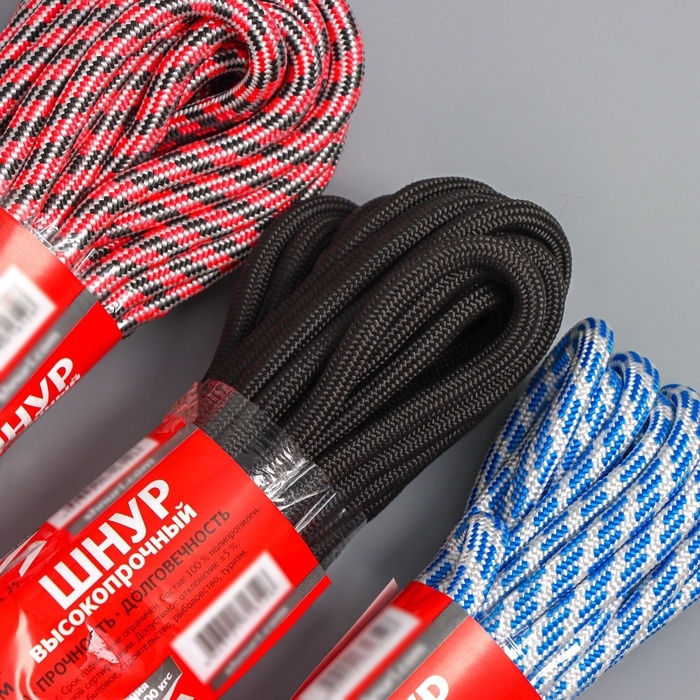 Шнур высокопрочный, d=8 мм, 10 м, цвет МИКС