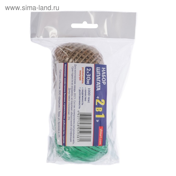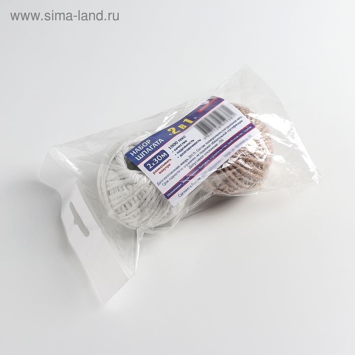 Набор шпагатов, 2 шт: полипропиленовый d=3 мм и джутовый скрученный d=1,5 мм, 30 м, цвет МИКС