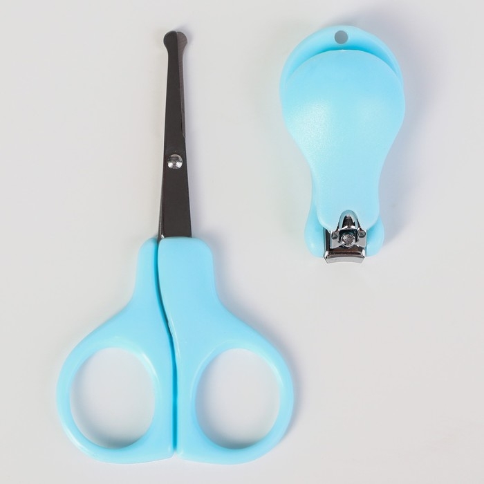 Детский маникюрный набор, 2 предмета: ножницы, щипчики, от 0 мес., цвета голубой
