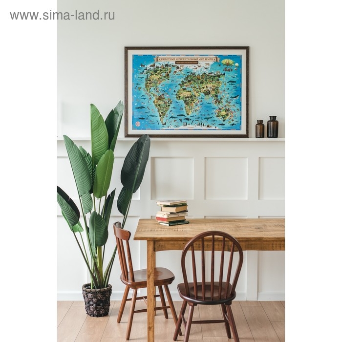 Карта «Животный и растительный мир Земли» создана специально для почемучек-дошколят. Огромные кашалоты, хищные акулы, забавные панды, величественные тигры, яркие бабочки и другие животные поселятся в детской вместе с картой.
