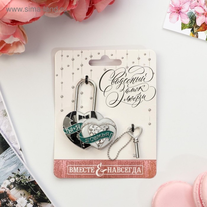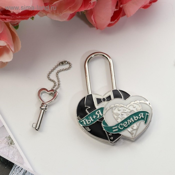 Замок свадебный с ключом « Ты и Я = СЕМЬЯ».