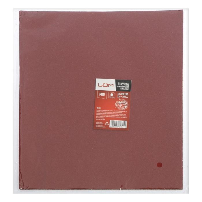 Шкурка шлифовальная в листах ЛОМ, на бумажной основе водостойкая, 230 х 280, Р80, 10 шт.