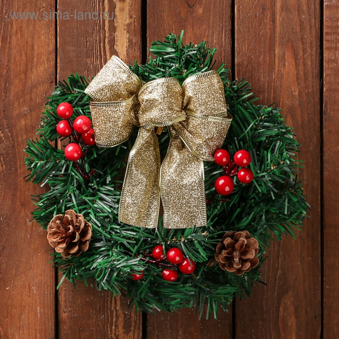 Венок новогодний d-20 см "Бантик" с ягодками и шишками