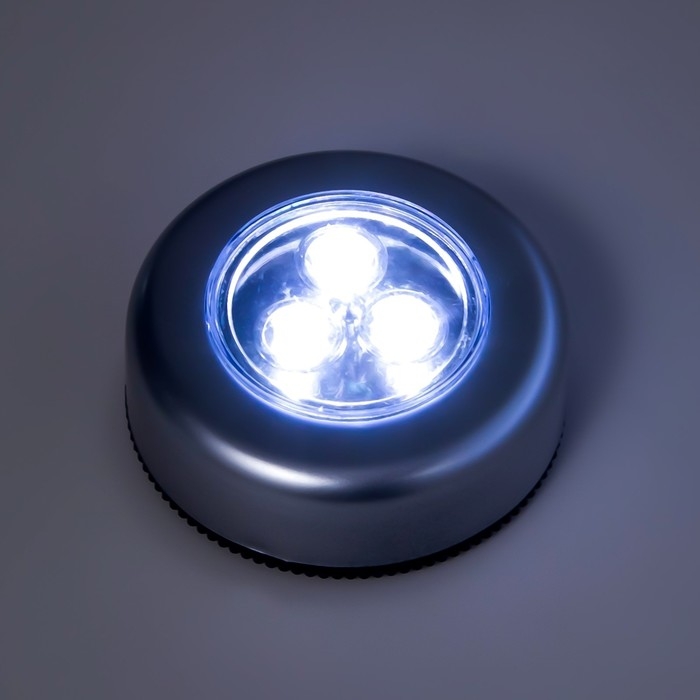 Такой осветительный предмет часто называют «таблеткой» — он удобный, плоский, мобильный! Прибор работает от батареек и может крепиться на двойной скотч к любой поверхности, где есть нужда в источнике света.