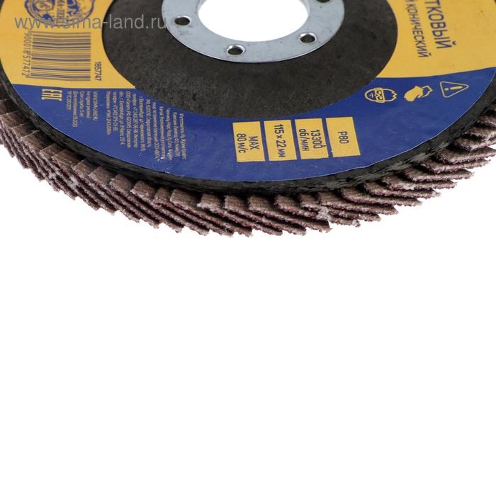 Круг лепестковый торцевой конический ТУНДРА, 115 х 22 мм, Р80