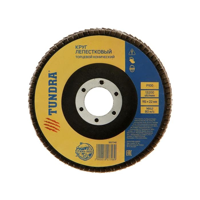Круг лепестковый торцевой конический ТУНДРА, 115 х 22 мм, Р100