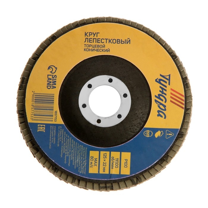 Круг лепестковый торцевой конический ТУНДРА, 125 х 22 мм, Р100