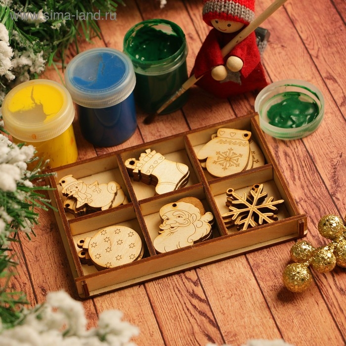 Набор заготовок для творчества «Ёлочные игрушки», 6 видов, 18 шт, размер 4х4 см