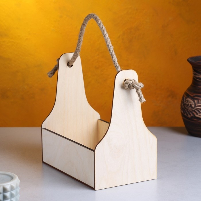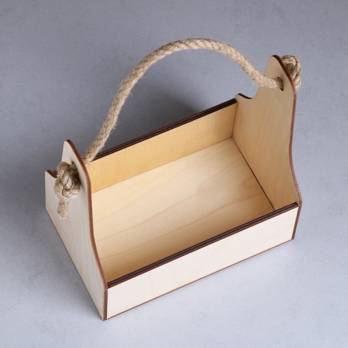 Кашпо деревянное 20×12.5×20 см Стелла Моно, ручка верёвка, натуральный Дарим Красиво