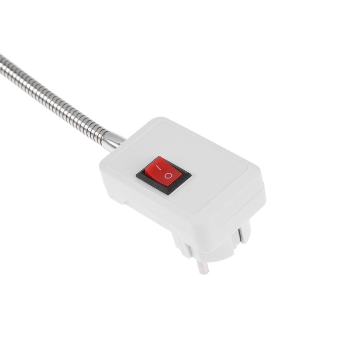 Выключатель на корпусе поможет мгновенно регулировать подачу питания. Гибкий шнур изделия позволяет вручную направлять поток света.